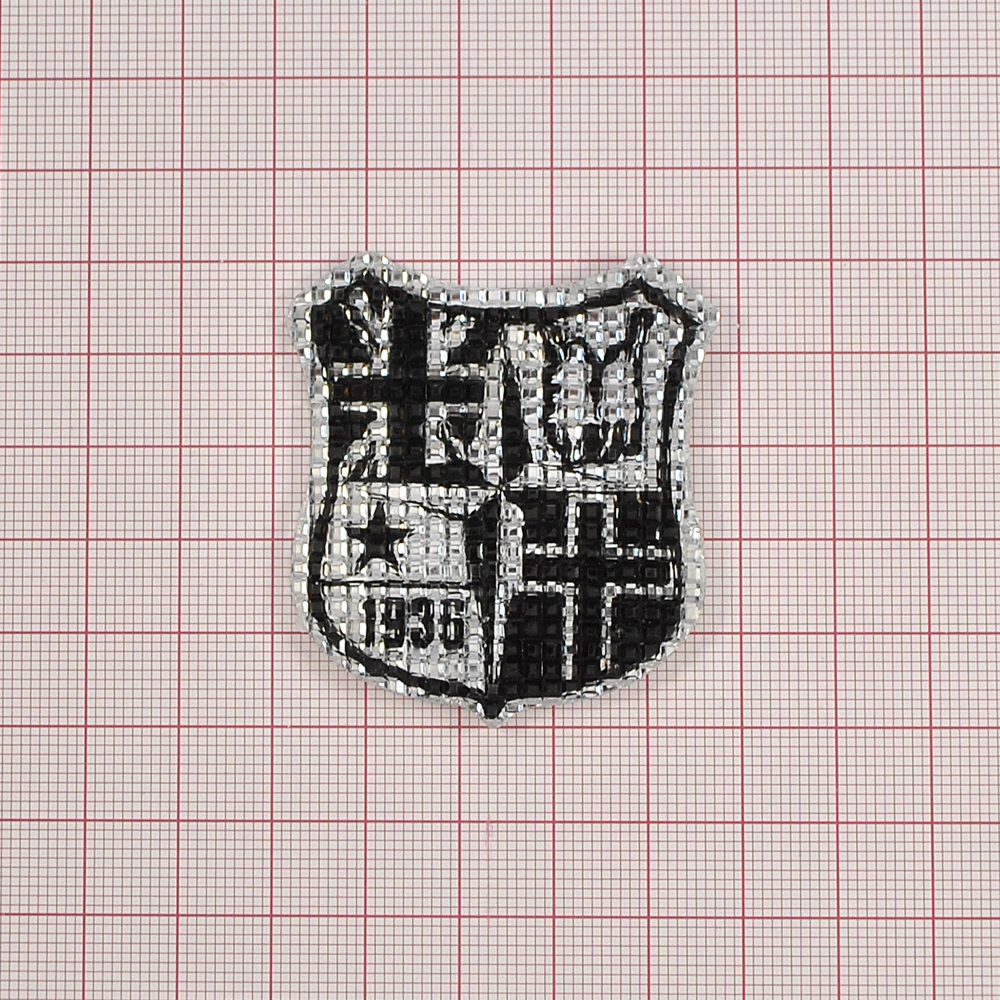 Аппликация клеевая резиновая D116 Герб 48*53мм бело-черный, шт