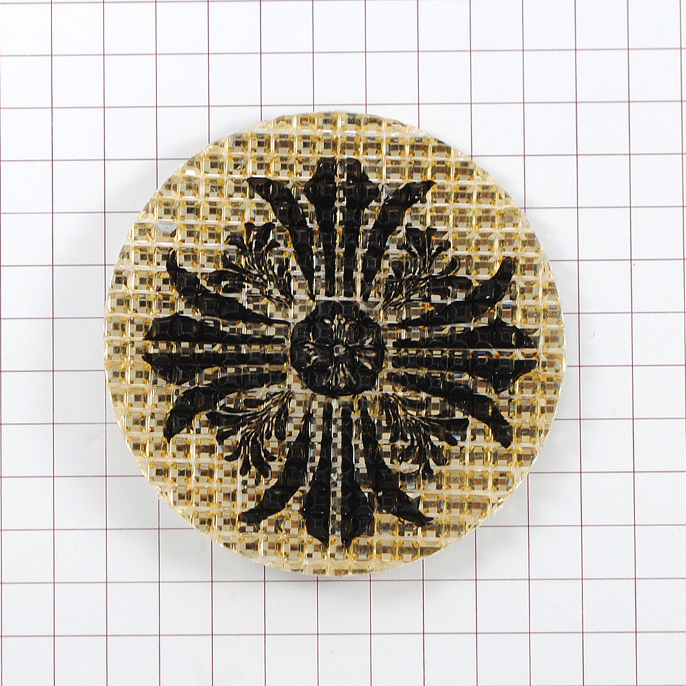 Аппликация клеевая резиновая D149 Крест УЗОР 45мм круглая светло-желтый, черный рисунок, шт