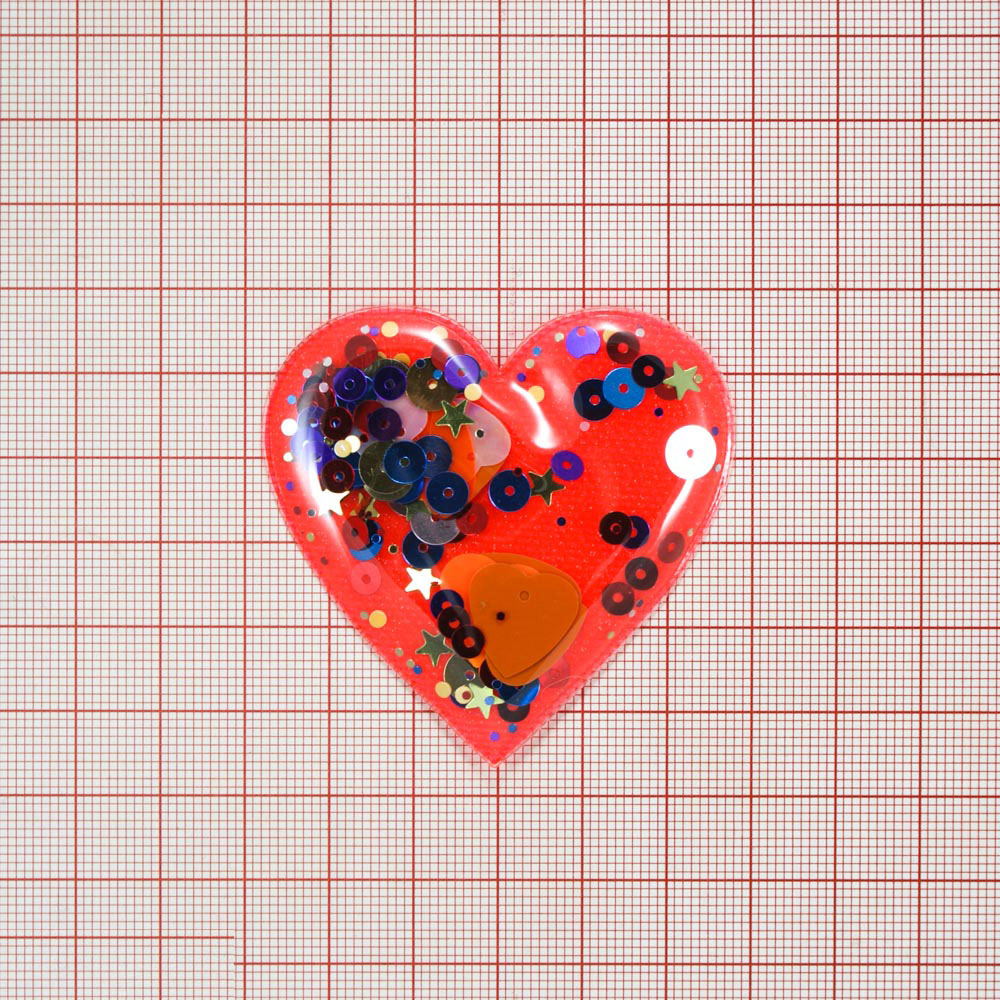 Аппликация клеевая силиконовая Аквариум Сердце 5,5*5,5см ярко-оранжевый, шт