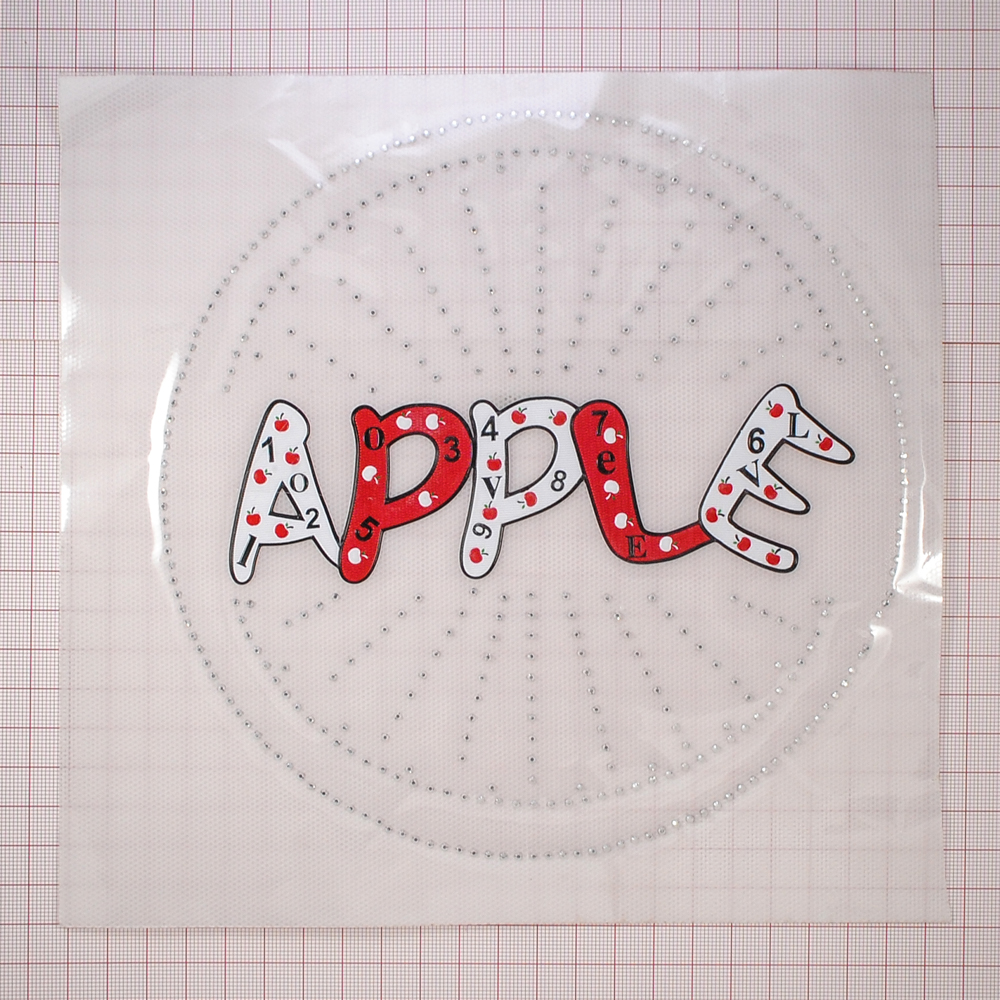 Термоаппликация стразы металл APPLE, 19см, черный, белый, красный, шт