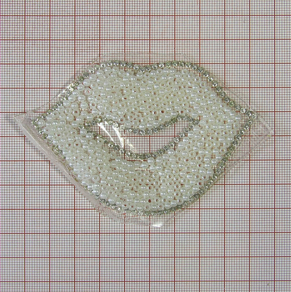 Аппликация клеевая стразы Губы 9*6,5см белый жемчуг бисер, кристальные камни, шт