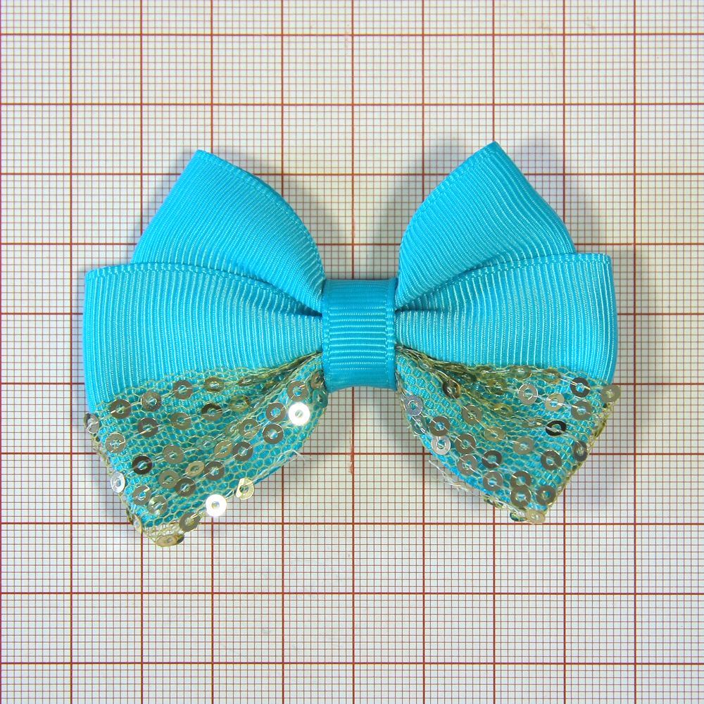 Аппликация декор обувная SAF0124 5*7см бирюзовый бантик, золот. пайетки, шт