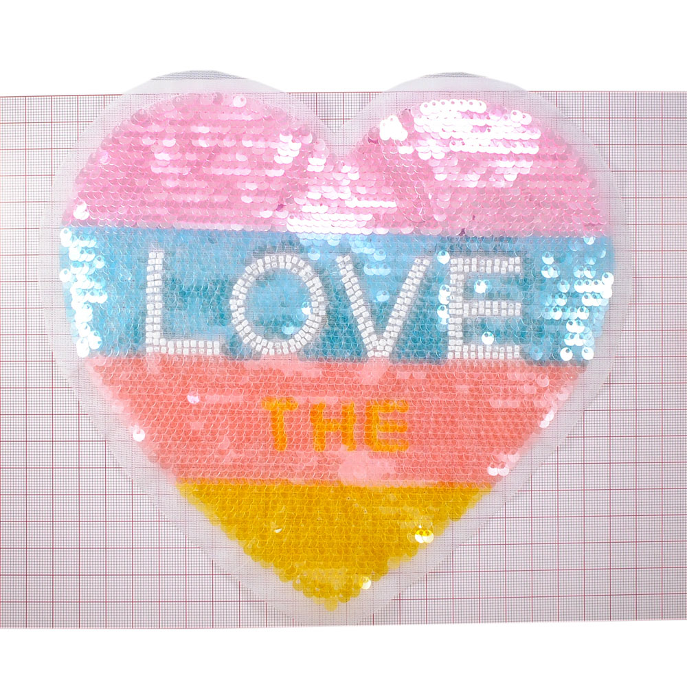 Аппликация пришивная пайетки Сердце LOVE, 18*22см, розовый, белый, голубой, желтый, шт