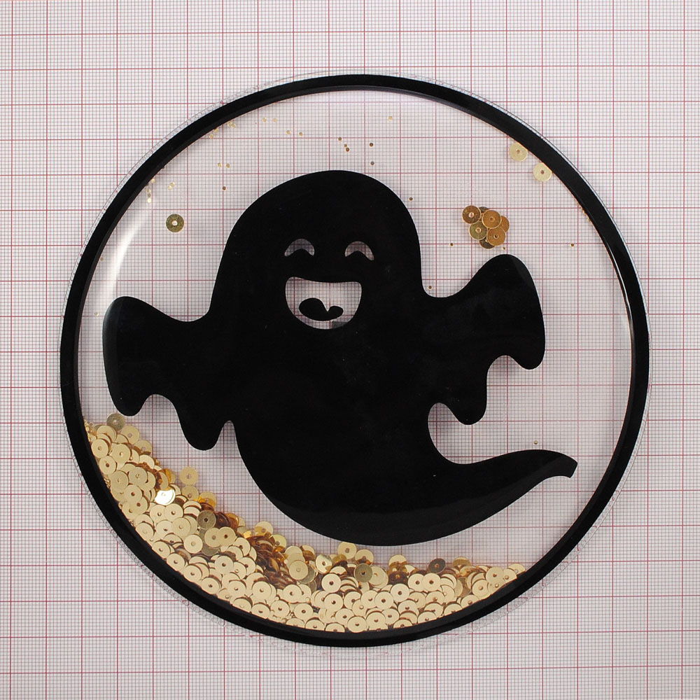 Аппликация пришивная силиконовая Аквариум Привидение, 12*12см, прозрачный, черный, белый, золото, шт
