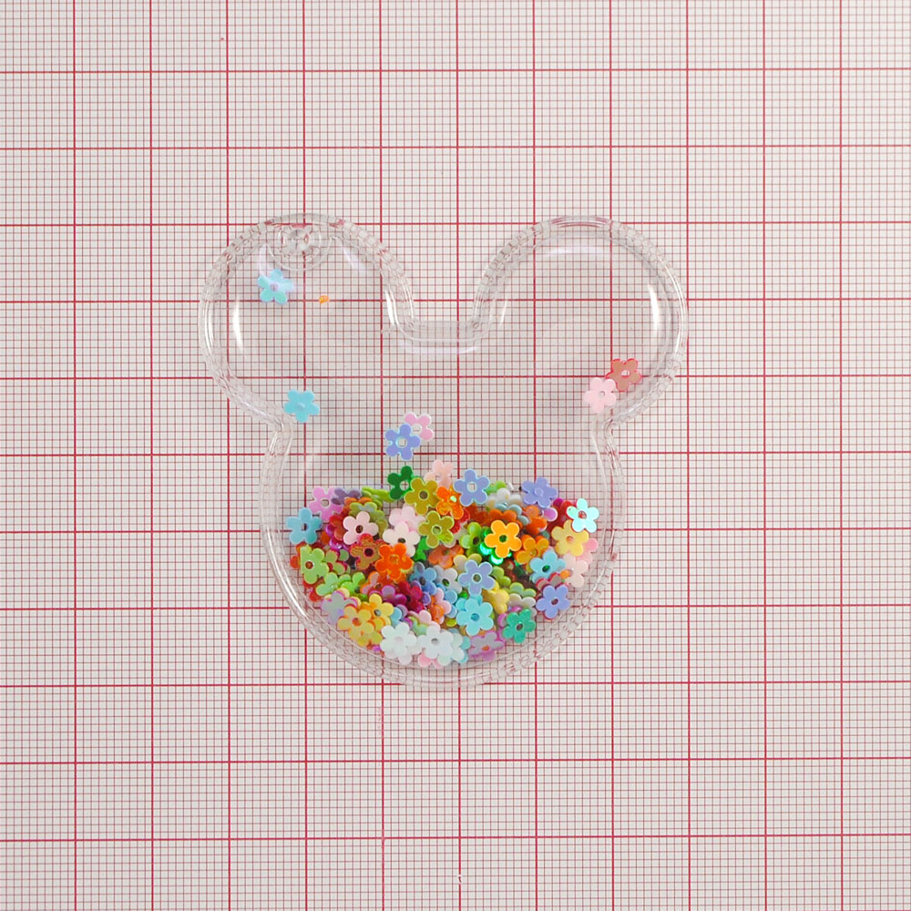 Аппликация пришивная силиконовая Аквариум с цветочками Микки, 5,5*5,5см, прозрачный белый, шт