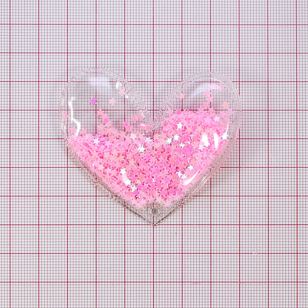 Аппликация пришивная силиконовая Аквариум со звездочками Сердце, 6*5,5см, прозрачный, розовый, шт