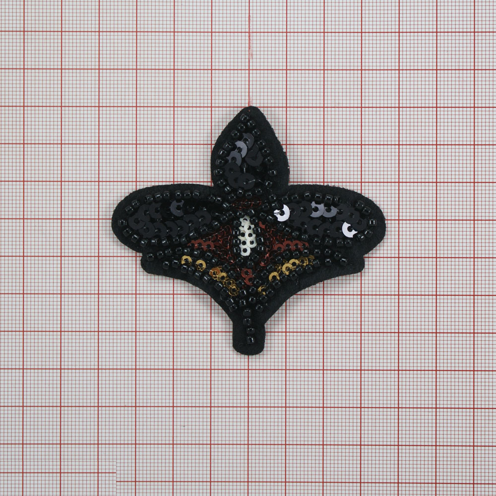 Аппликация пришивная бисер Лилия черная 7,8*6,5см черн. бисер, цветные пайетки, шт