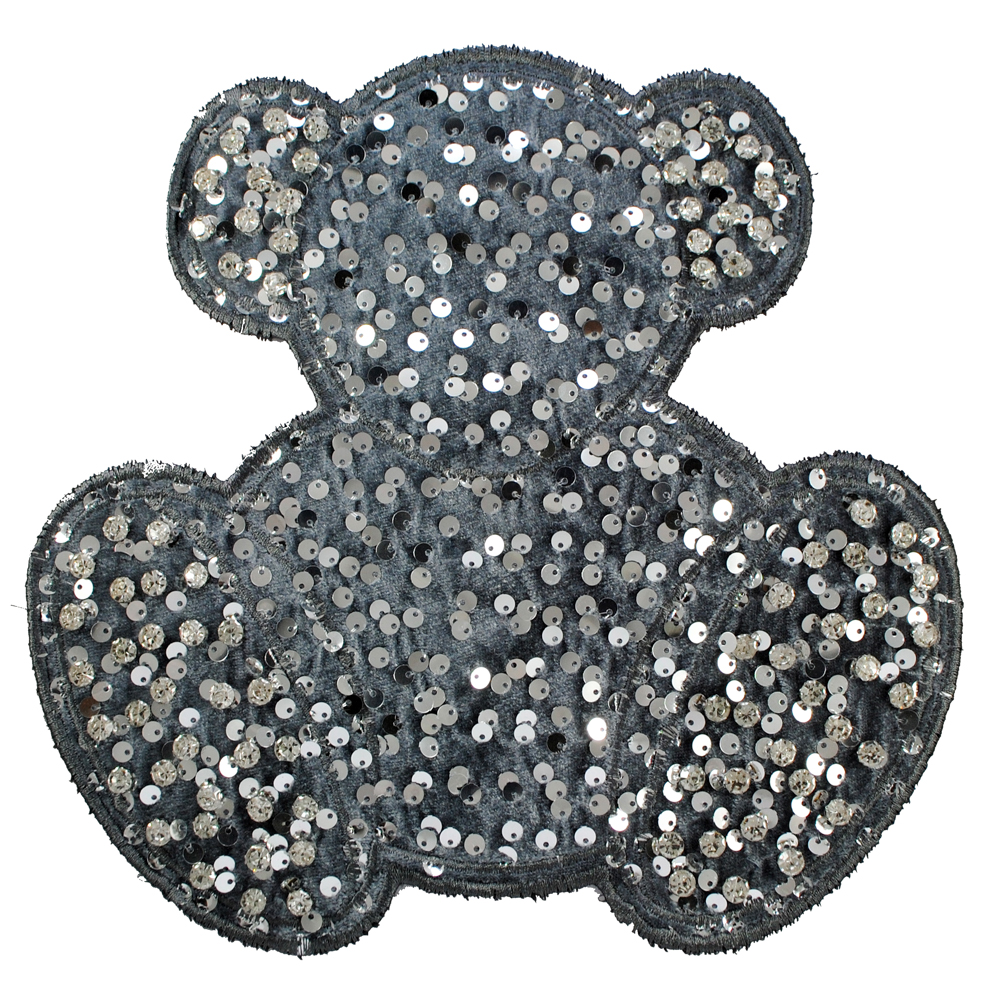 Аппликация приш. Мишка 22,5*23 см, основа серебро с пайетками, стразы crystal, шт