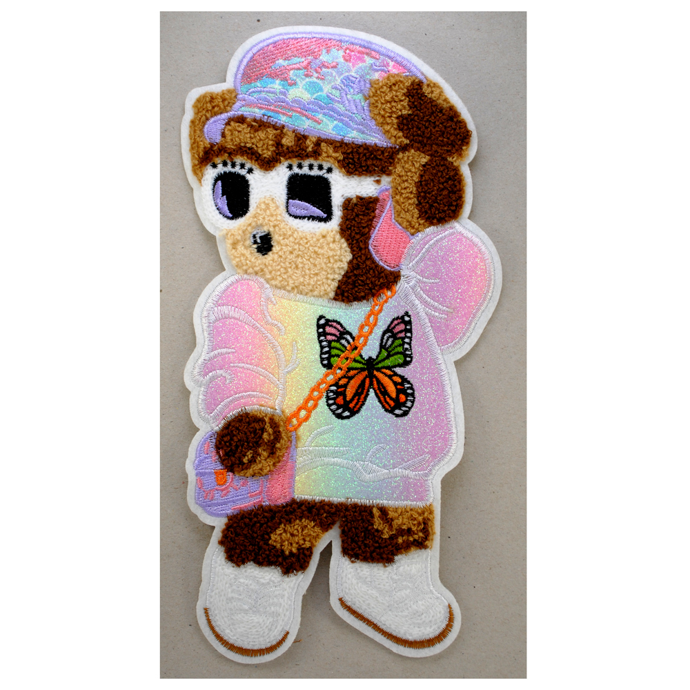 Аппликация тканевая пришивная Медведица в очках, 27*13,4см, розовый, сиреневый, белый, коричневый, шт