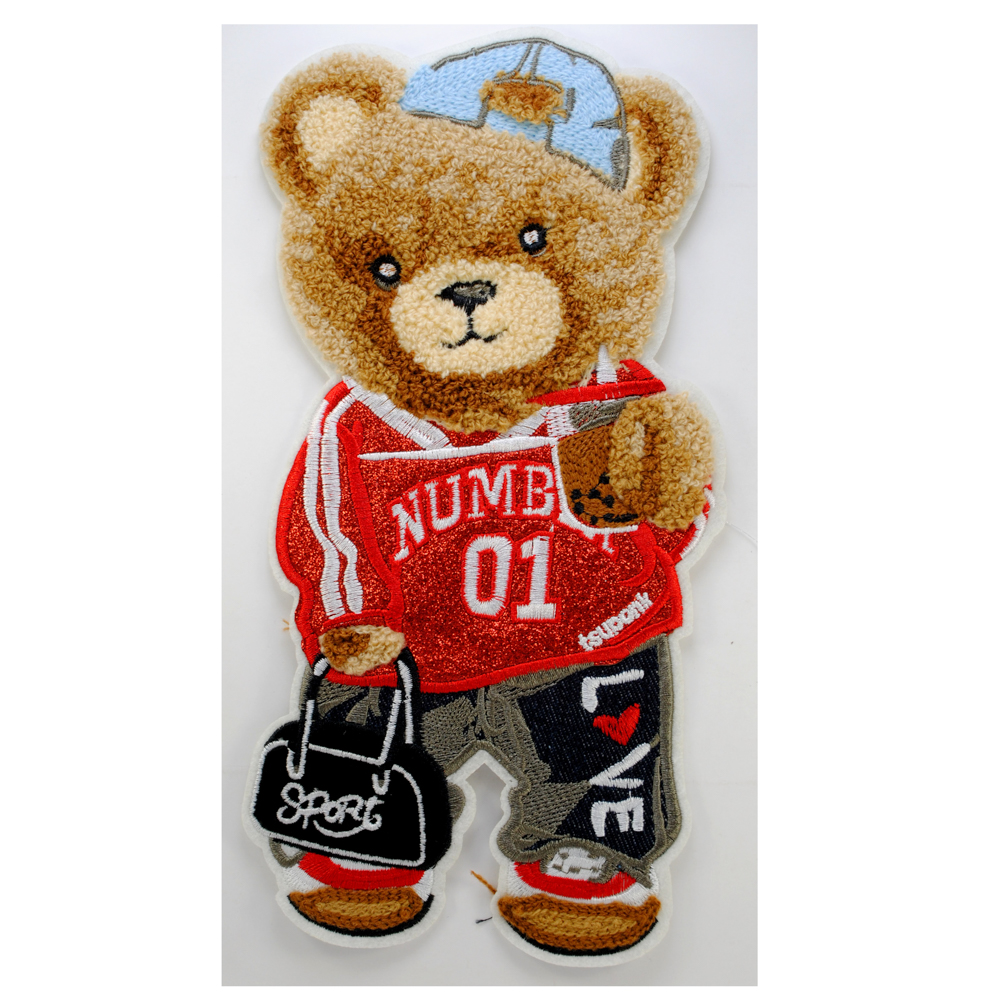 Аппликация тканевая пришивная Мишка 01, 26*13см, коричневый, бежевый, красный, синий, шт