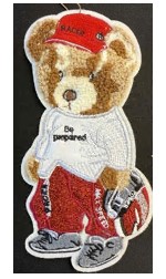 Аппликация тканевая пришивная Мишка в кепке, 26*13,3см, коричневый, бежевый, красный, белый, шт