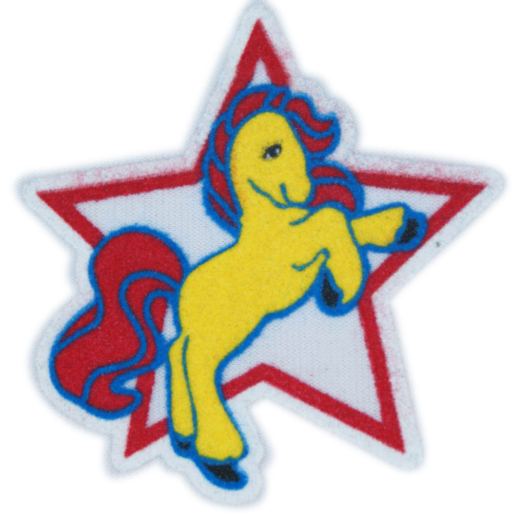 Термоаппликация флок Пони, Звезда, 85*90мм, красная звезда, желтый пони, шт