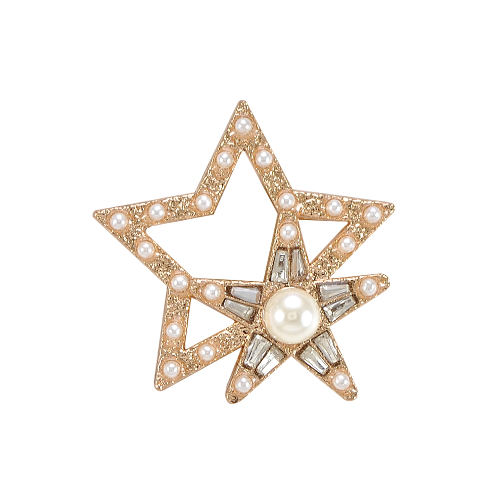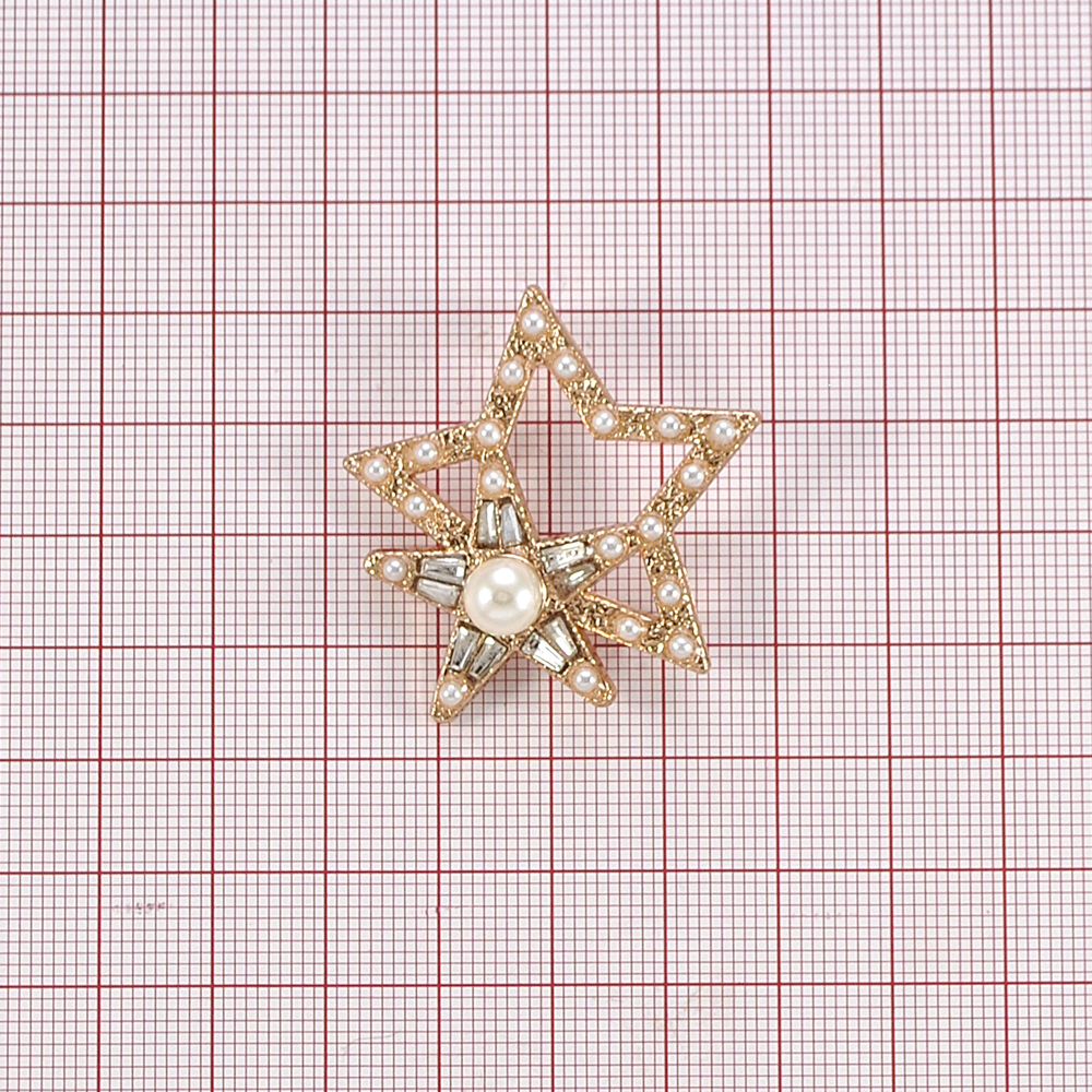 Брошь Две звезды камни, 4*4см, золото, жемчуг, шт
