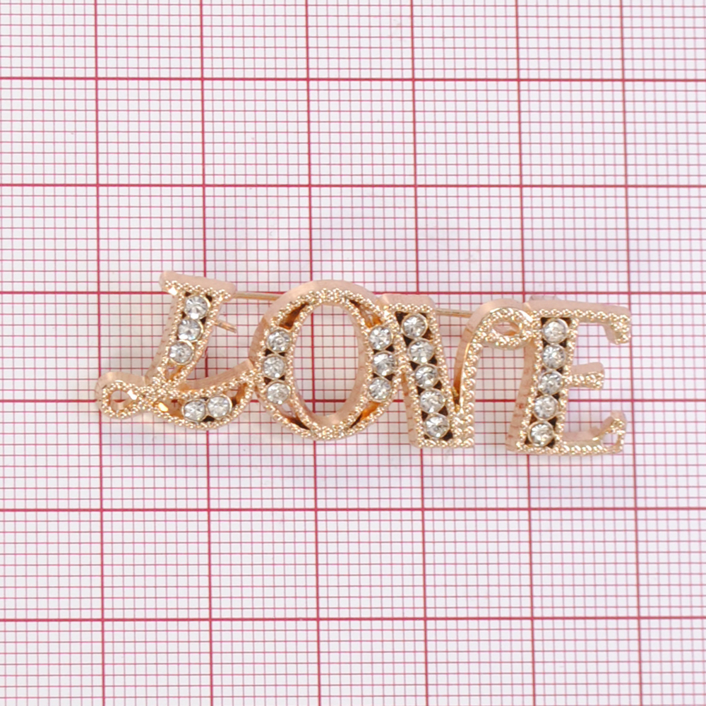 Брошь LOVE, 5*1,5см, зол., камни АА, шт