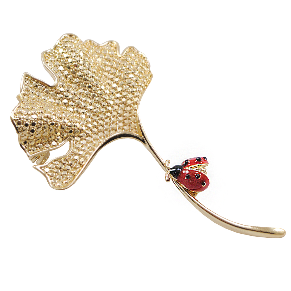 Брошь мет. стразы божья коровка на листике, 6,3*3,8см, золото, кр. эмаль, шт