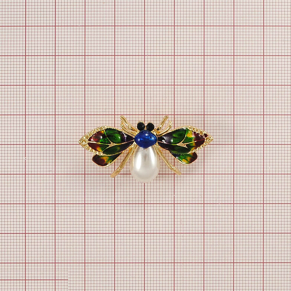 Брошь Муха золото и белый жемчуг, цветная эмаль, шт