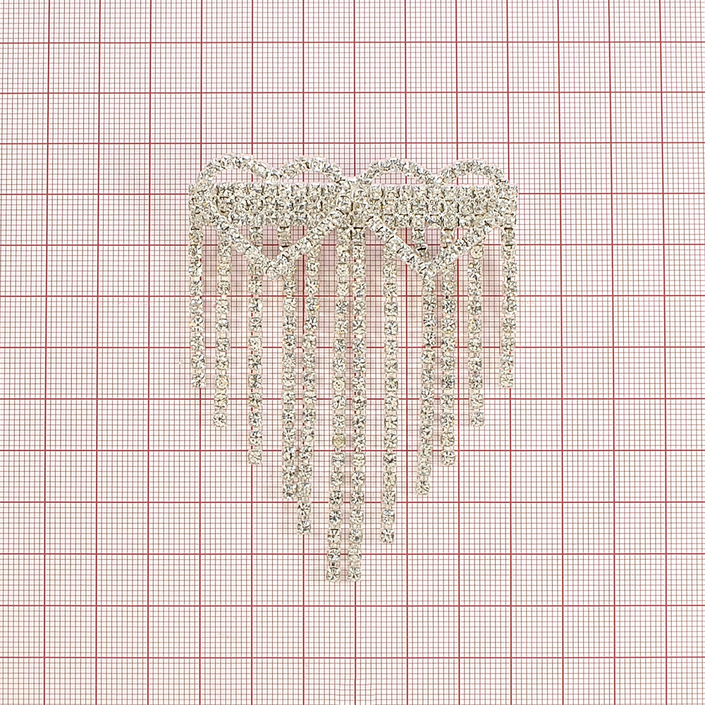 Брошь с подвескамииз камней Два сердца, 6*8,2см, белый, шт