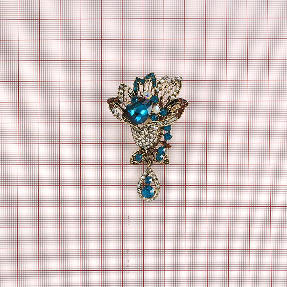 Брошь Тюльпан, 6*4см, бронза, голубой, коричневый, белый, шт