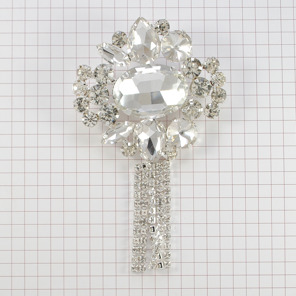 Брошь металлическая, стразы крест, 6*9,7см, белый, шт