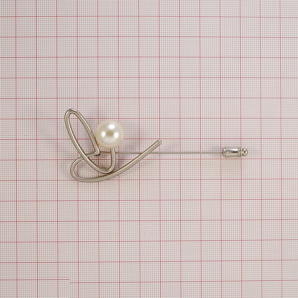 Булавка LOVE 9*3,8см matt nickel и белый жемчуг, шт