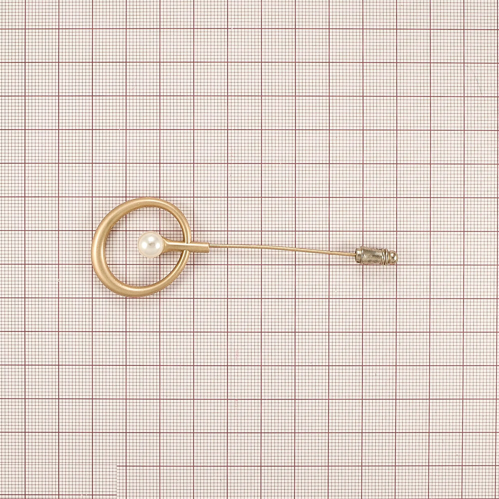 Булавка Жемчуг в круге 8,6*3см matt gold, белый жемчуг, шт