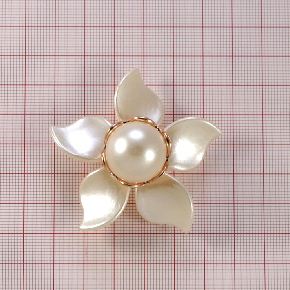 Декор пластик пришивной B70 51мм белый перламутр, GOLD, белый жемчуг, шт