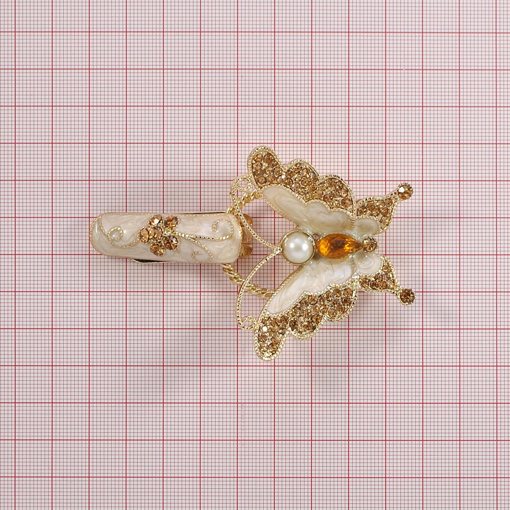 Клипса шубная 3279758 GOLD, перламутровая белая эмаль, золотые камни, шт