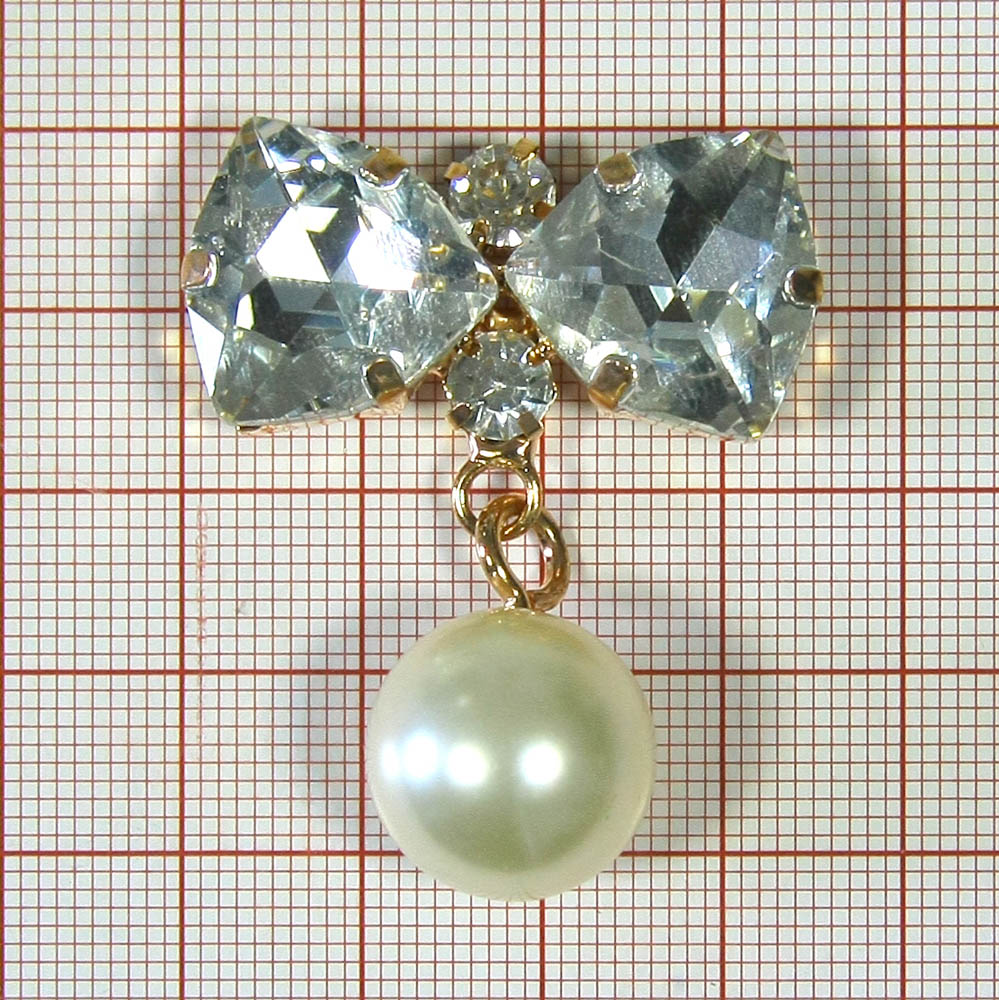 Краб металл Бант с подвеской 35*45мм GOLD, 2 больших камня, белый жемчуг