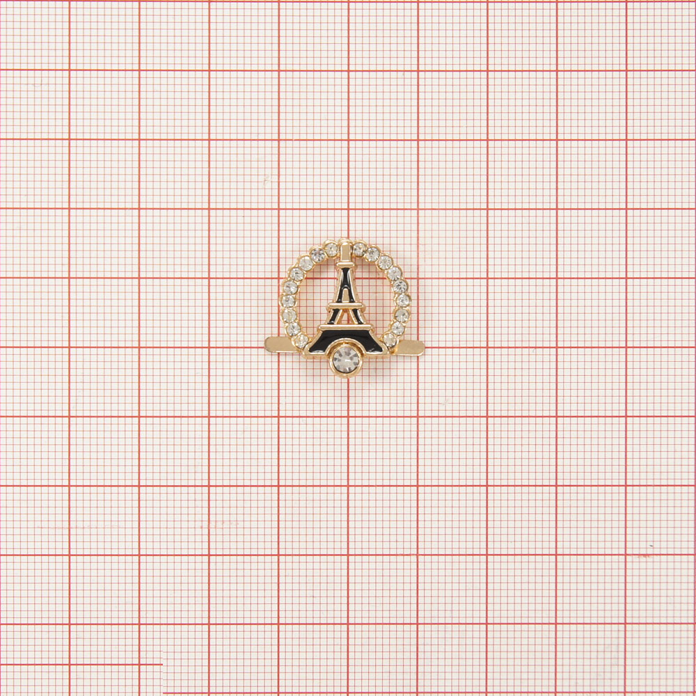 Краб металл Эйфелева башня Арка 19*20мм GOLD, белые камни, черная эмаль, шт