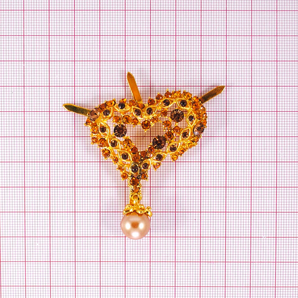 Краб металл Сердце сплюснутое с жемчугом, GOLD, шт