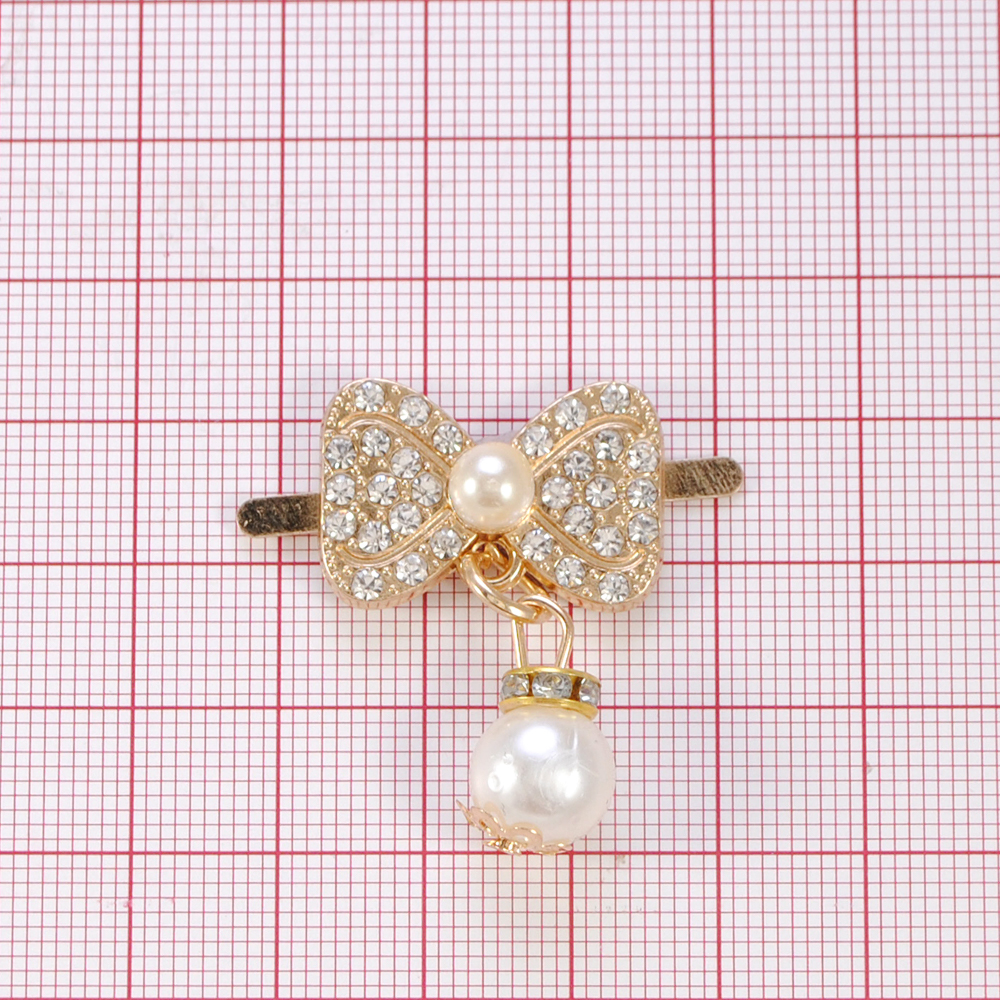 Краб мет., стразы, Бантик с подвеской, 1,6*2,4см, жемч., зол., шт