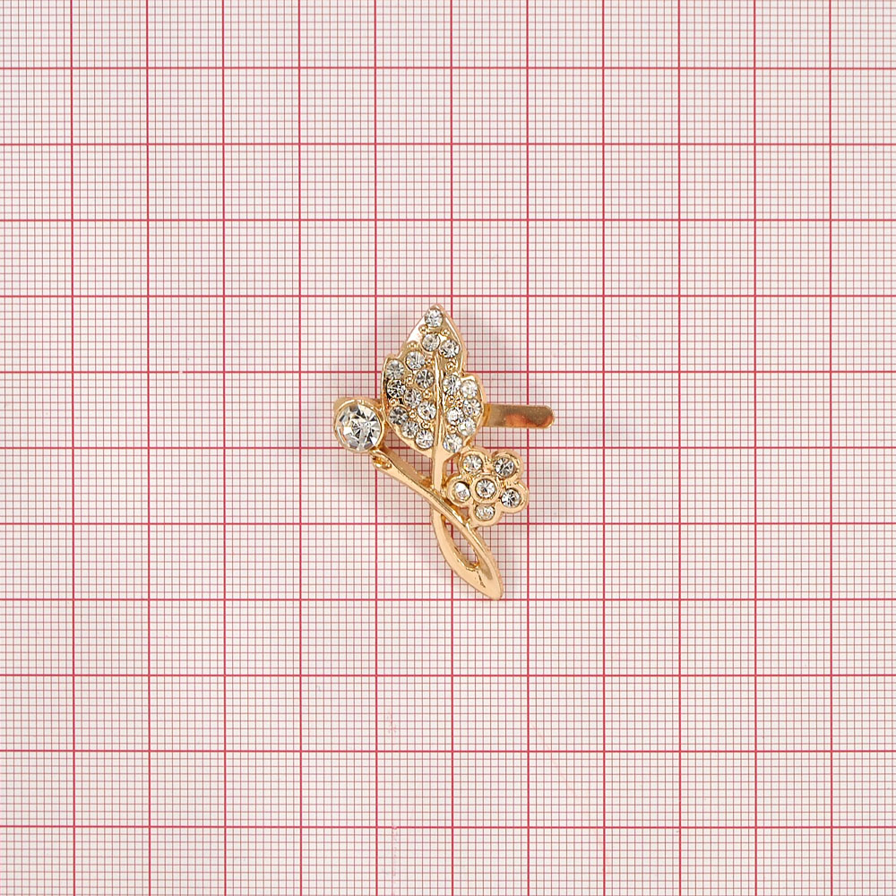 Краб металл 52042 Веточка 40*25мм GOLD, белые камни, шт