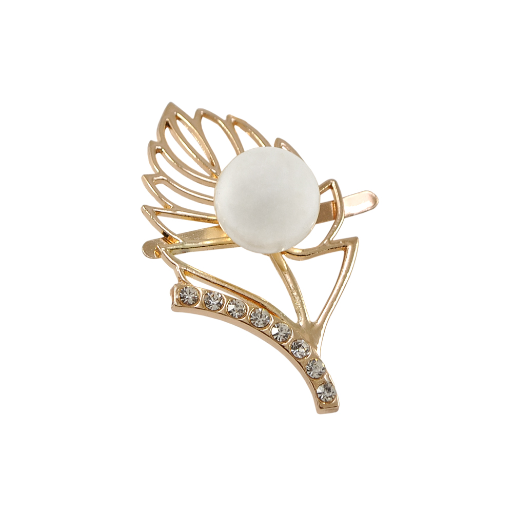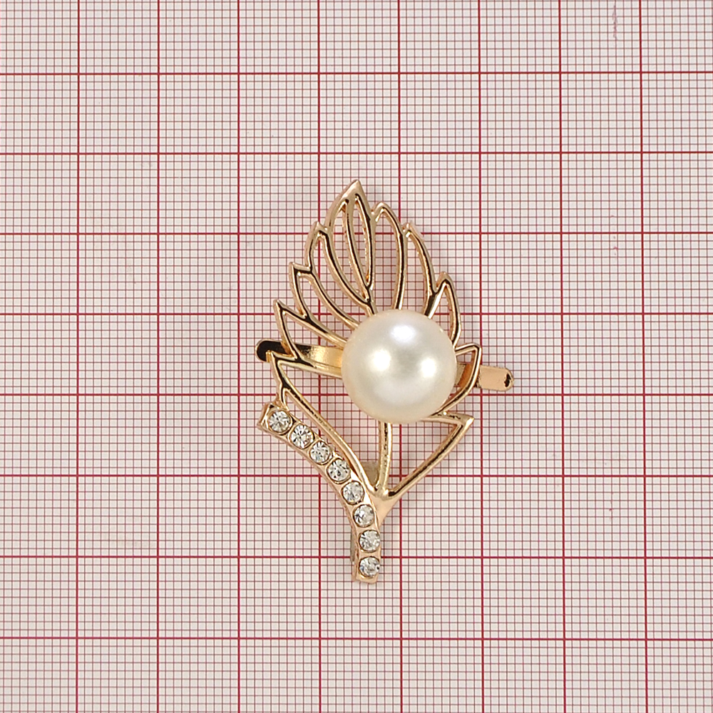 Краб металл Лист в белом жемчуге ЛЕВЫЙ 54*40 золото, белые камни, белый жемчуг, шт