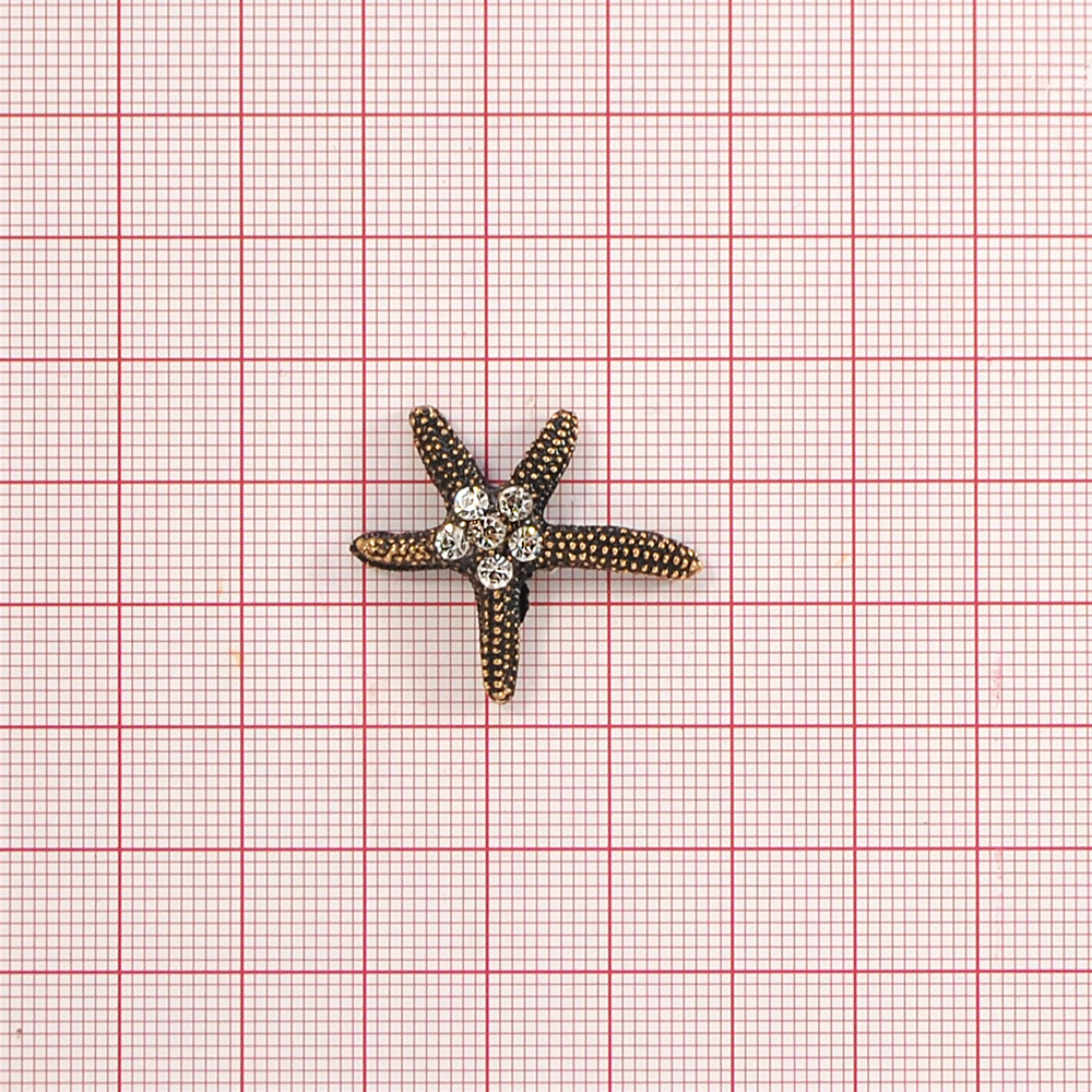 Краб металл Морская звезда ПРАВАЯ 30*25мм ANTIC GOLD, белые камни, шт