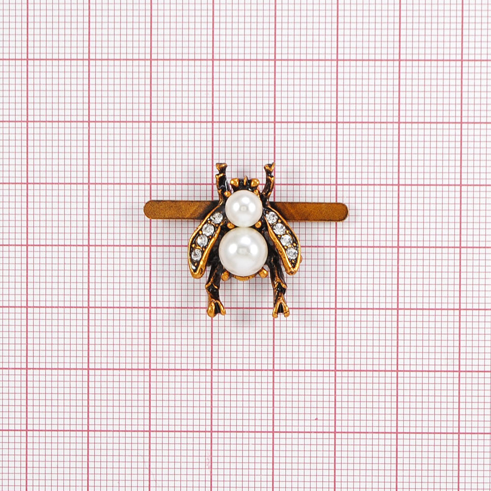 Краб металл Муха в стразах 25*18мм antic gold, белый жемчуг, белые камни, шт