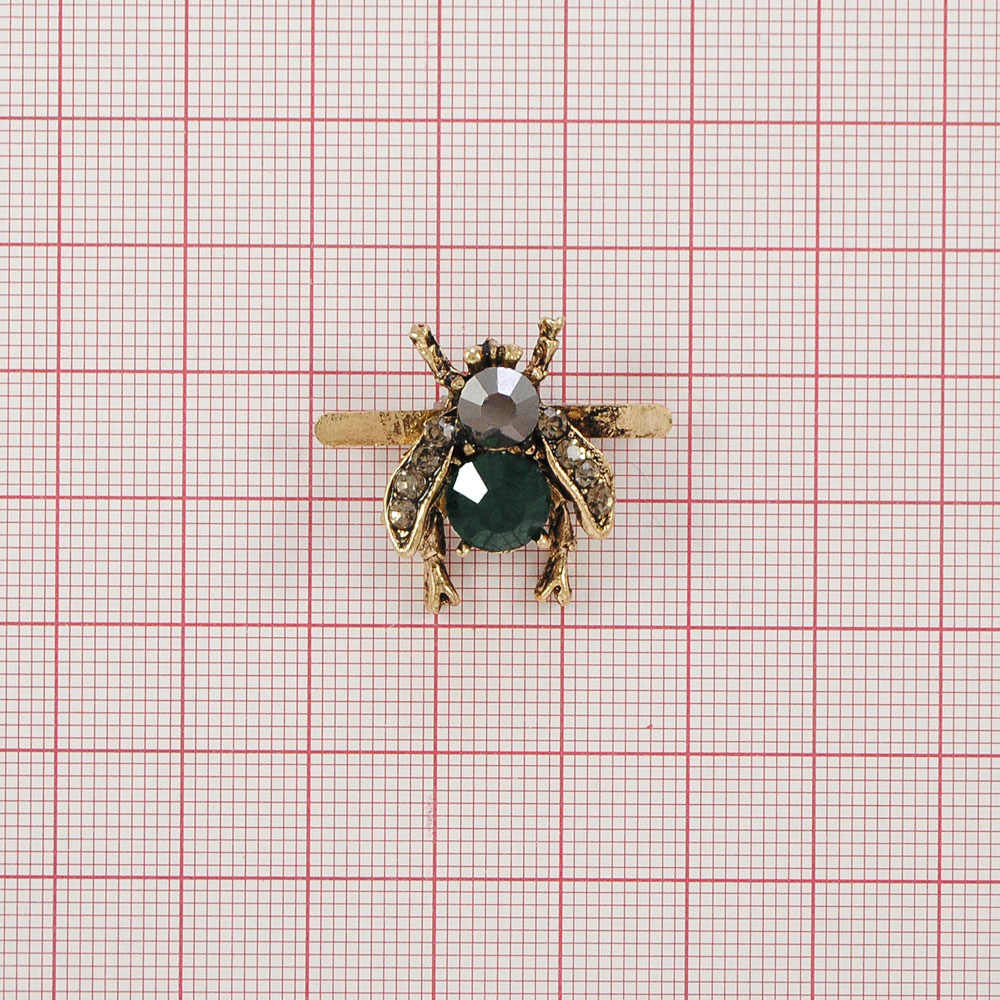 Краб металл Муха зеленая 2,5*2см, antic gold, зеленый, хематит камни, шт