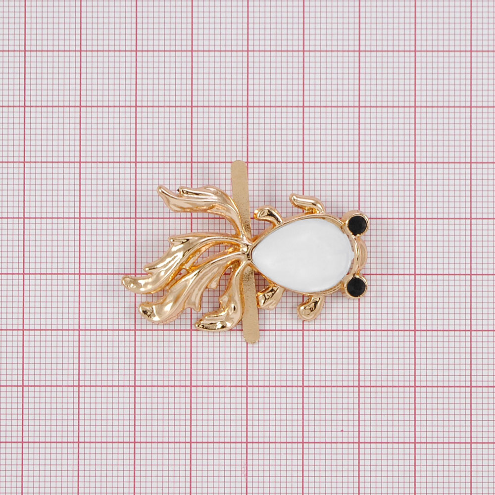 Краб металл Рыбка ПРАВЫЙ 39*25, золото, черные камни, белый жемчуг, шт