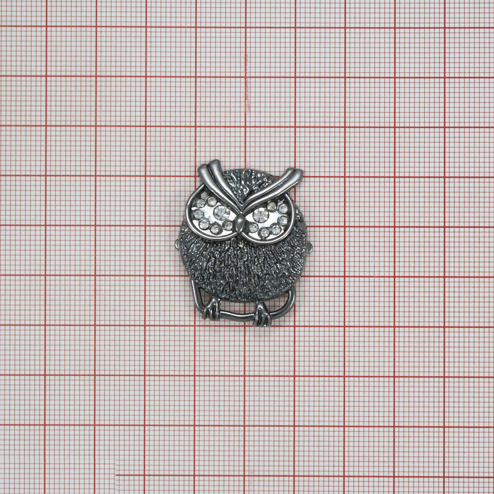 Краб металл Сова 2,5*3см black nikel, белые камни, шт