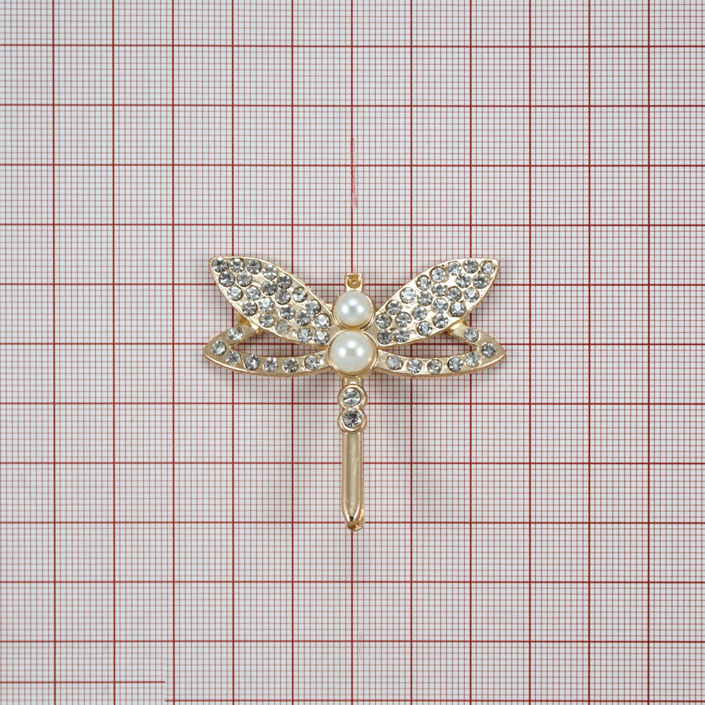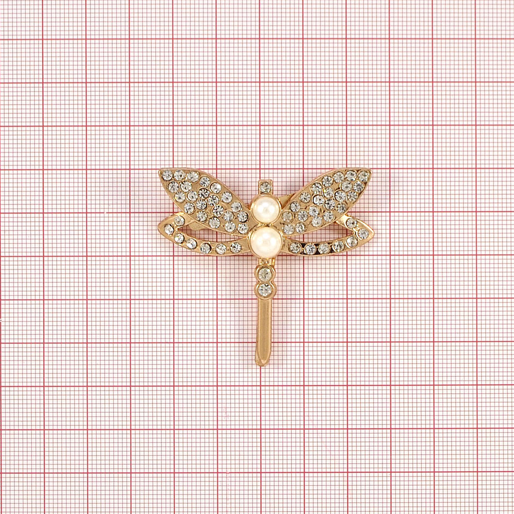Краб металл Стрекозюлька 61*61, золото, белые камни, белый жемчуг, шт