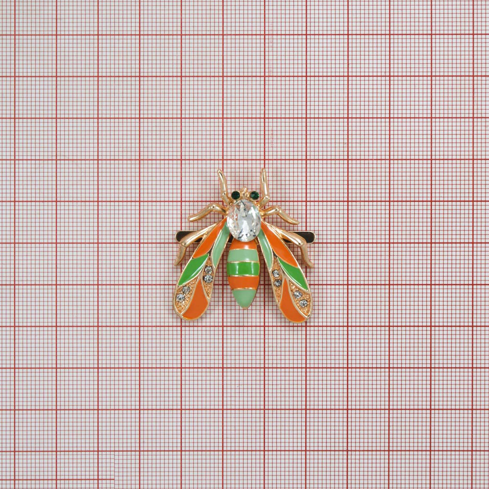 Краб металл Златоглазка 3,5*3,5 GOLD белые и зеленые камни, оранжевая и светло-зеленая эмаль, шт
