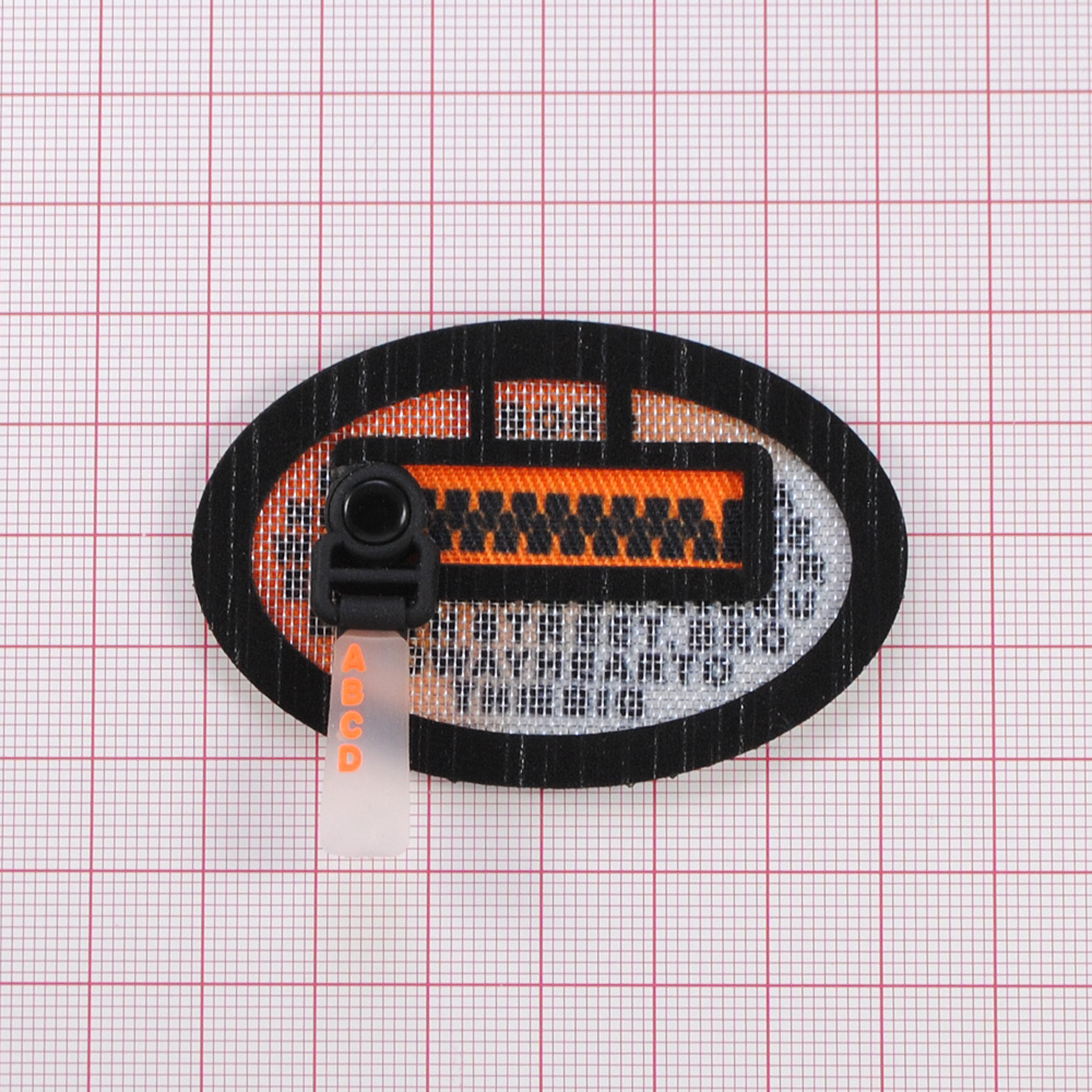 Лейба к/з и ткань, карман овал ABCD, рисунок змейка,4,2*6,4см, сер, оранж., черн., силикон, шт
