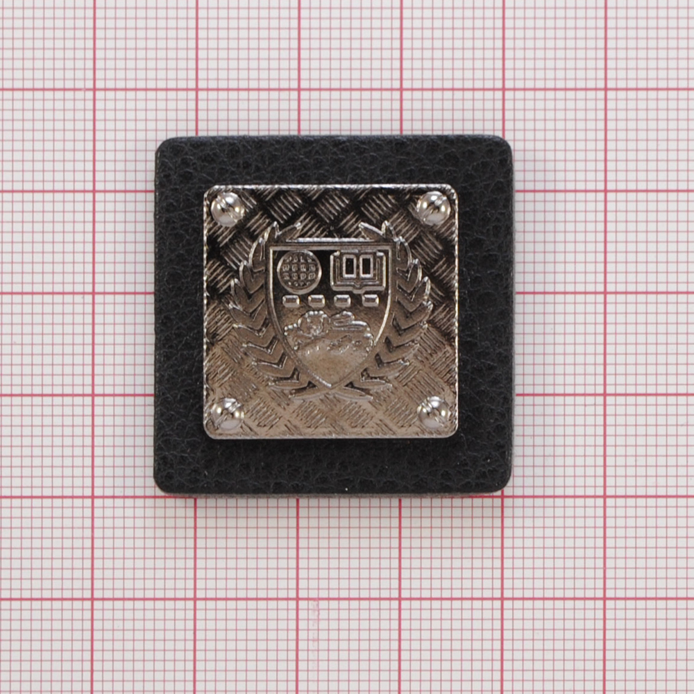 Лейба кожзам и металл Герб, 3,5*3,5см, черный, блек никель, шт