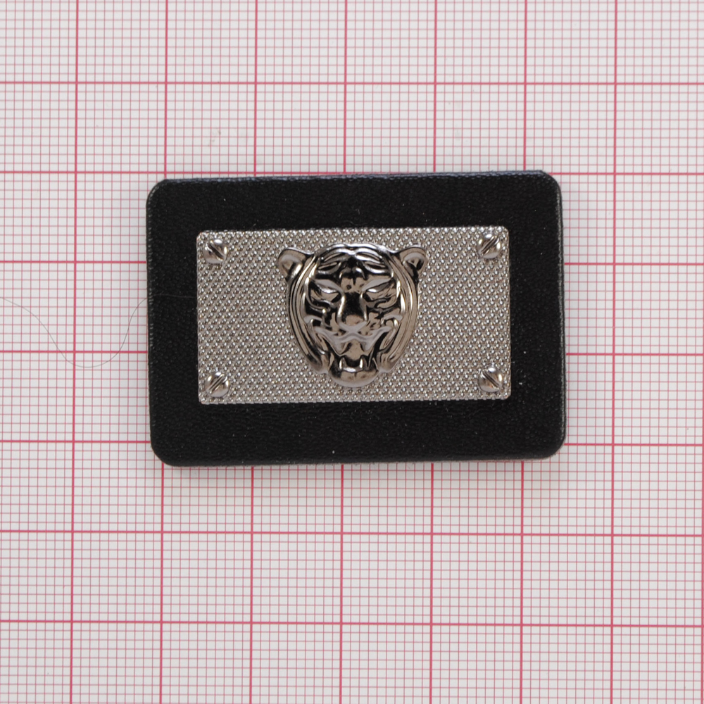 Лейба кожзам и металл Тигр, 4,6*3,2см, черный, блек никель, шт