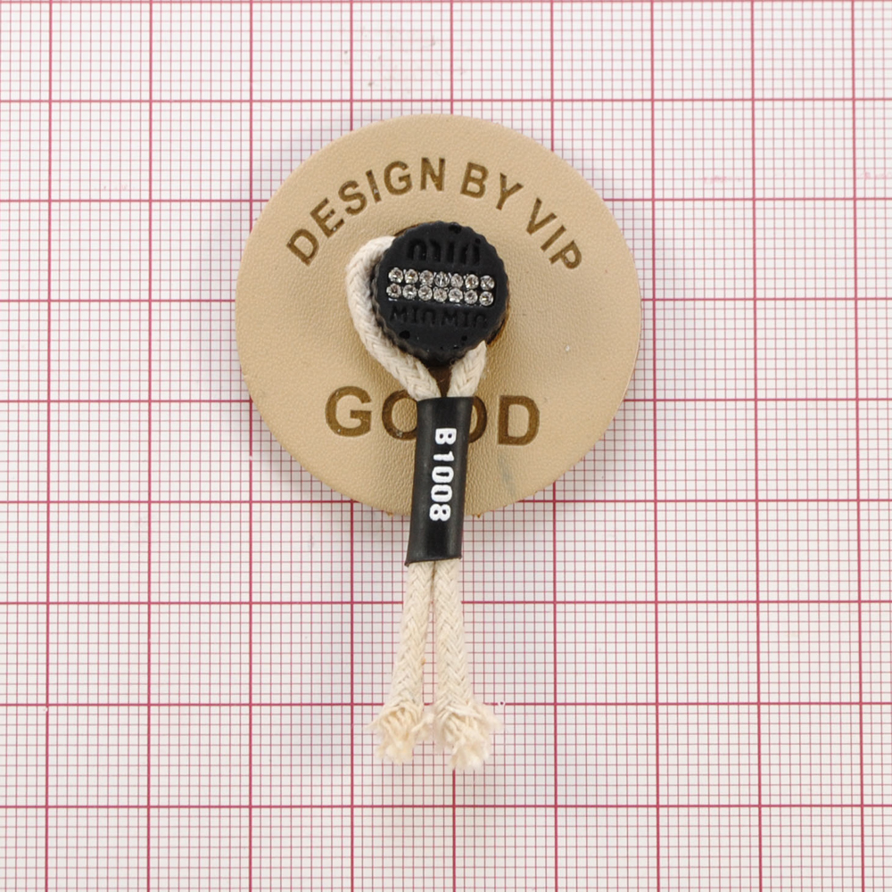 Лейба п/у GOOD (с шнурком), 4*6,4см, бежевый, черный, белый, стразы, шт