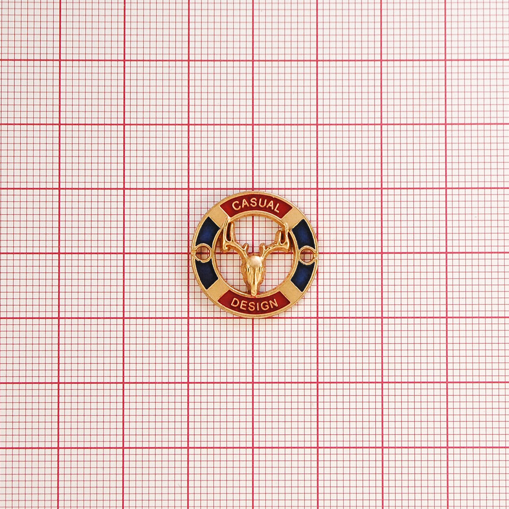 Лейба металл Casual Олень 20мм пришивная, mat. GOLD, красный, синяя эмаль