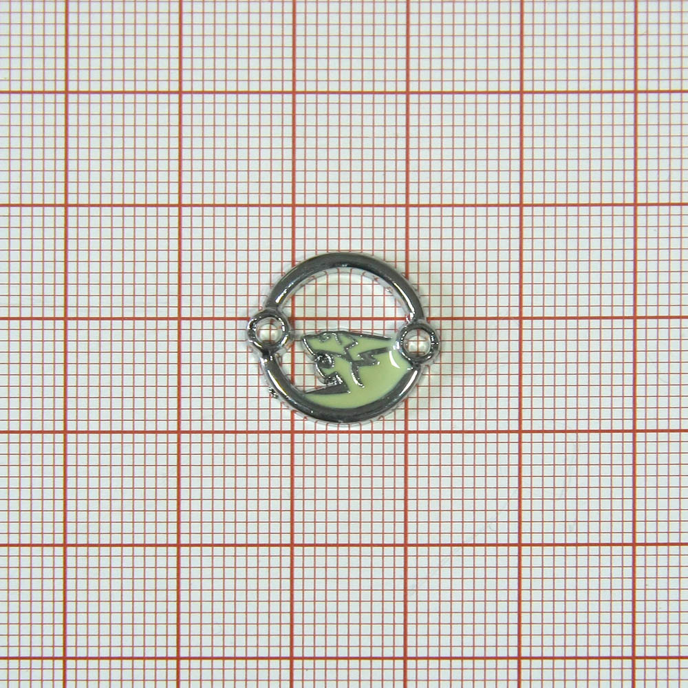 Лейба металл полукольцо-эмаль 17*15мм пришивная ХРОМ, салатовая эмаль