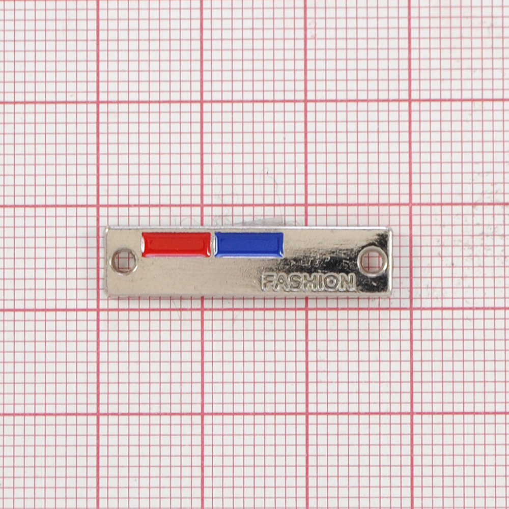 Лейба металл Fashion, лого вдавлен, красно-синяя эмаль, Nickel, шт