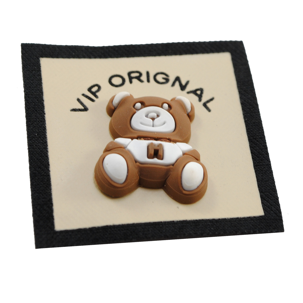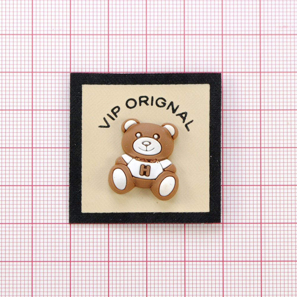 Лейба ткань и резина VIP мишка, 4*4см, черный, коричневый, бежевый, белый, шт