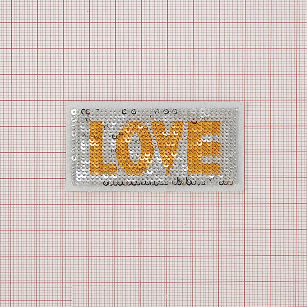 Аппликация пришивная пайетки LOVE 6,5*3см, золотой, серебряный, шт