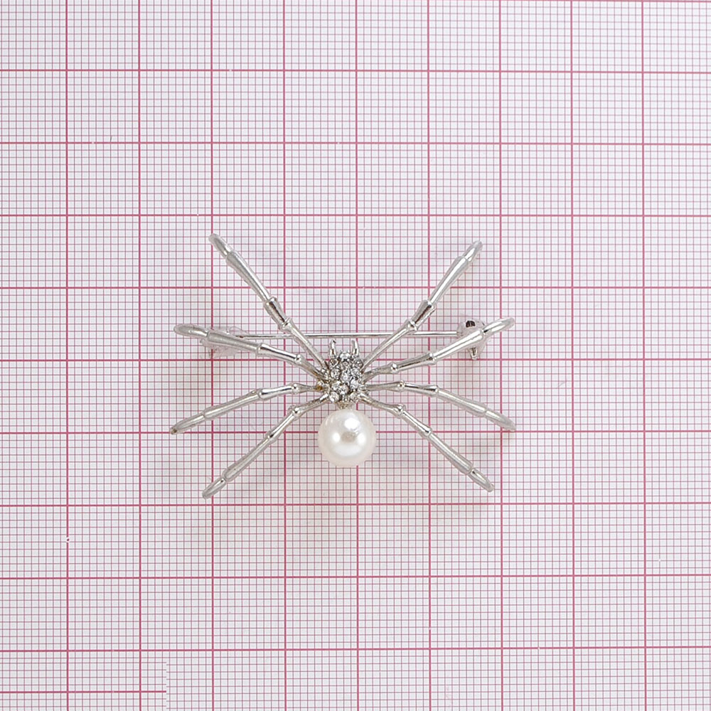 Брошь Паук никель, белый жемчуг, шт